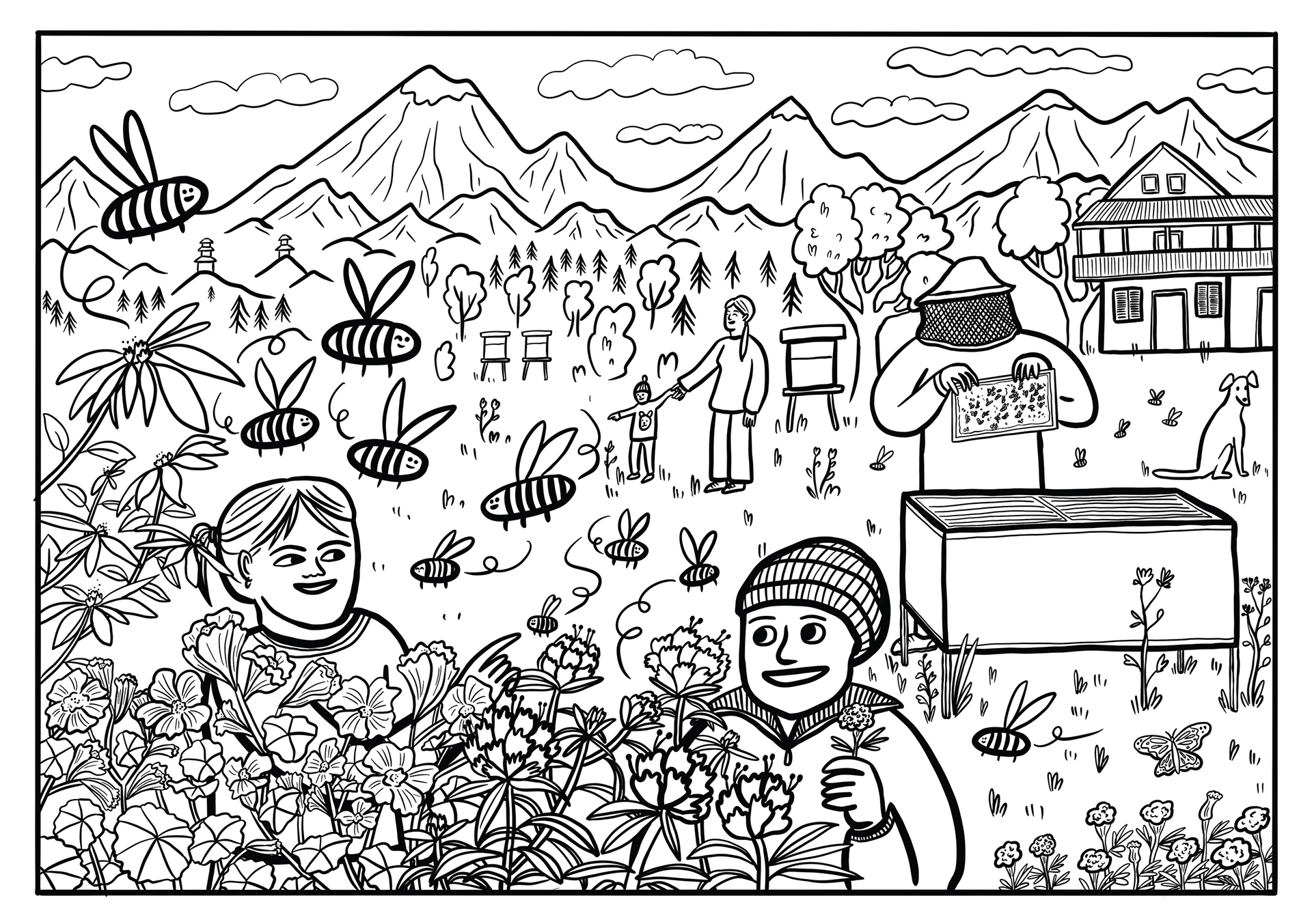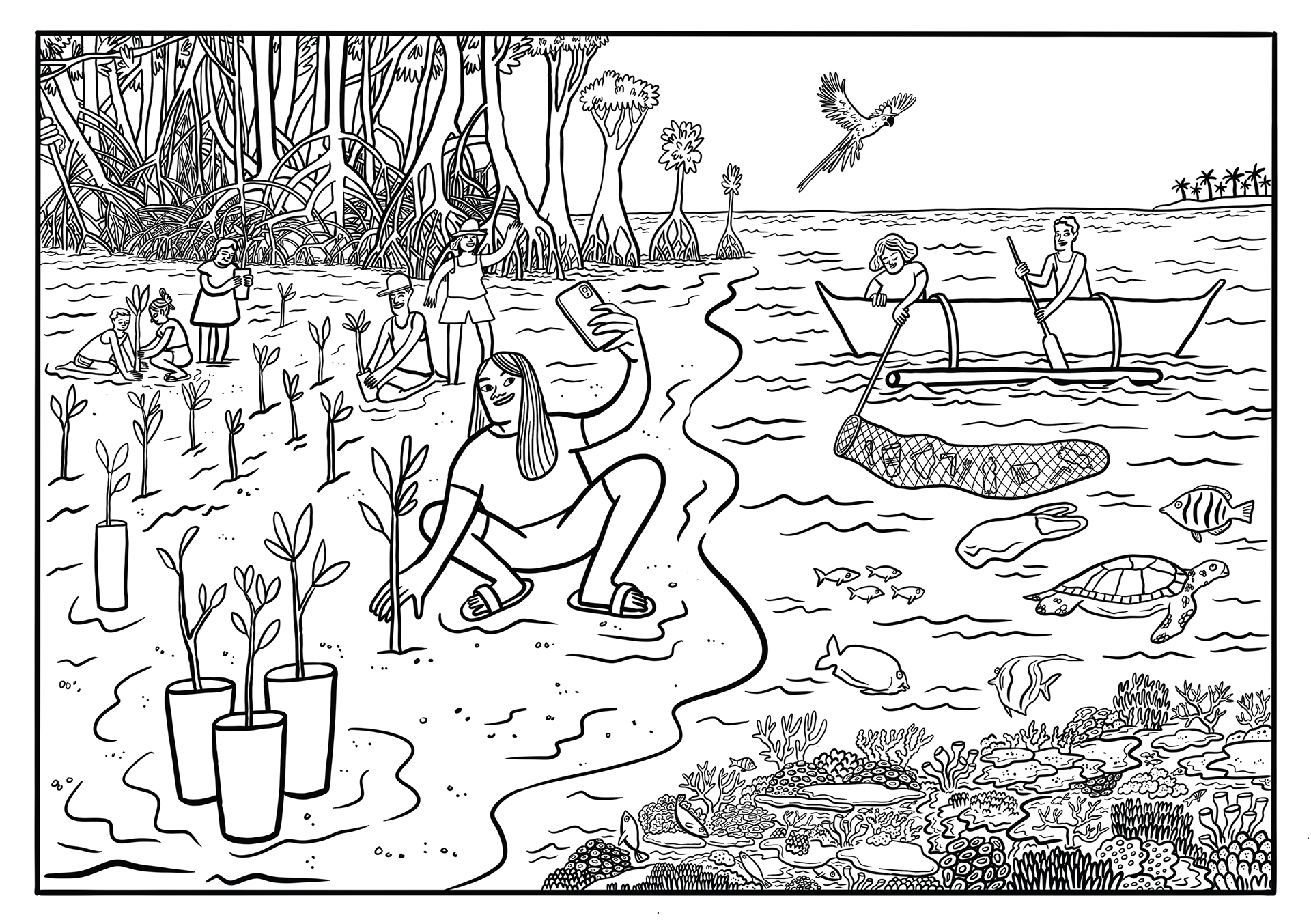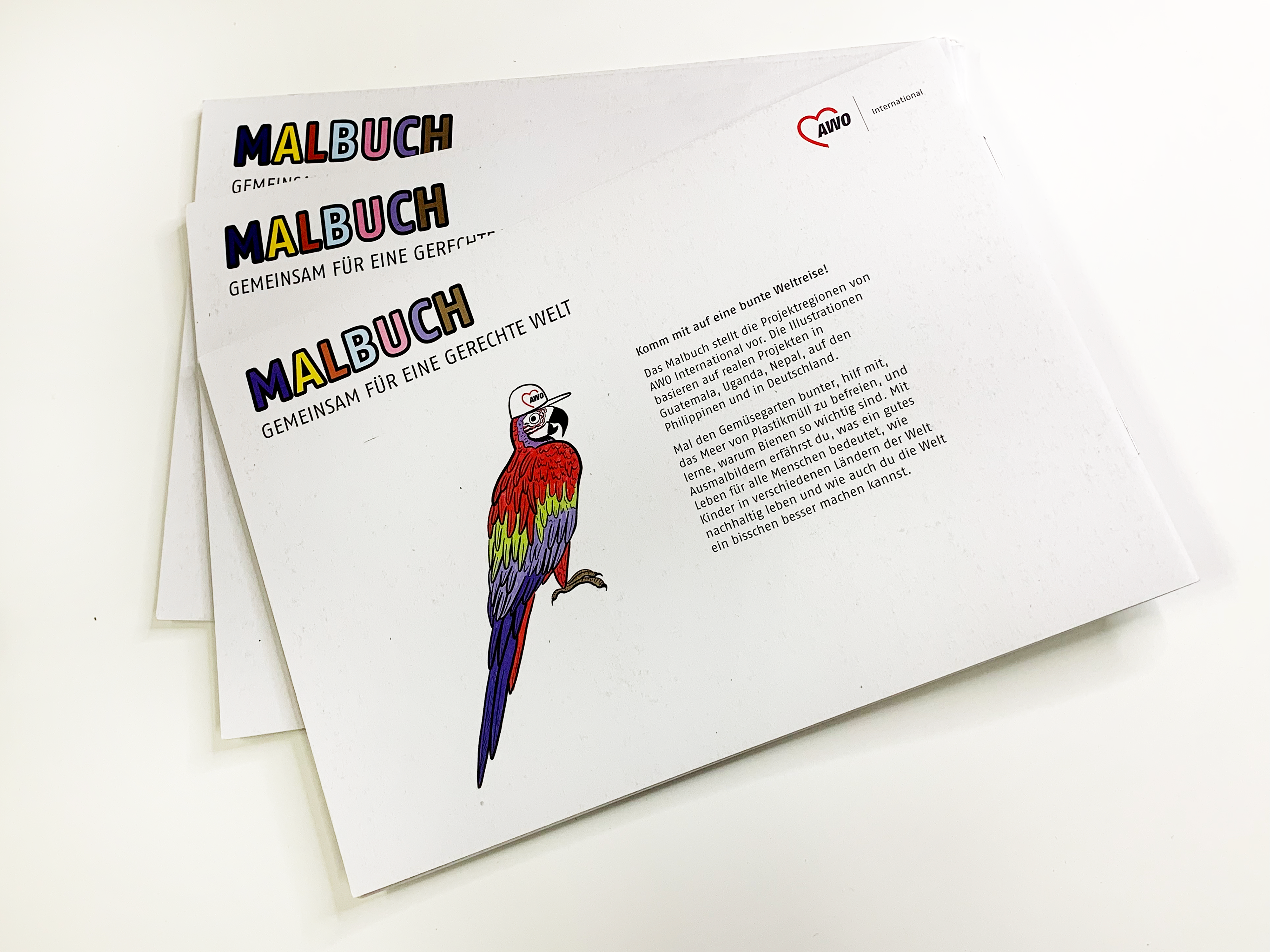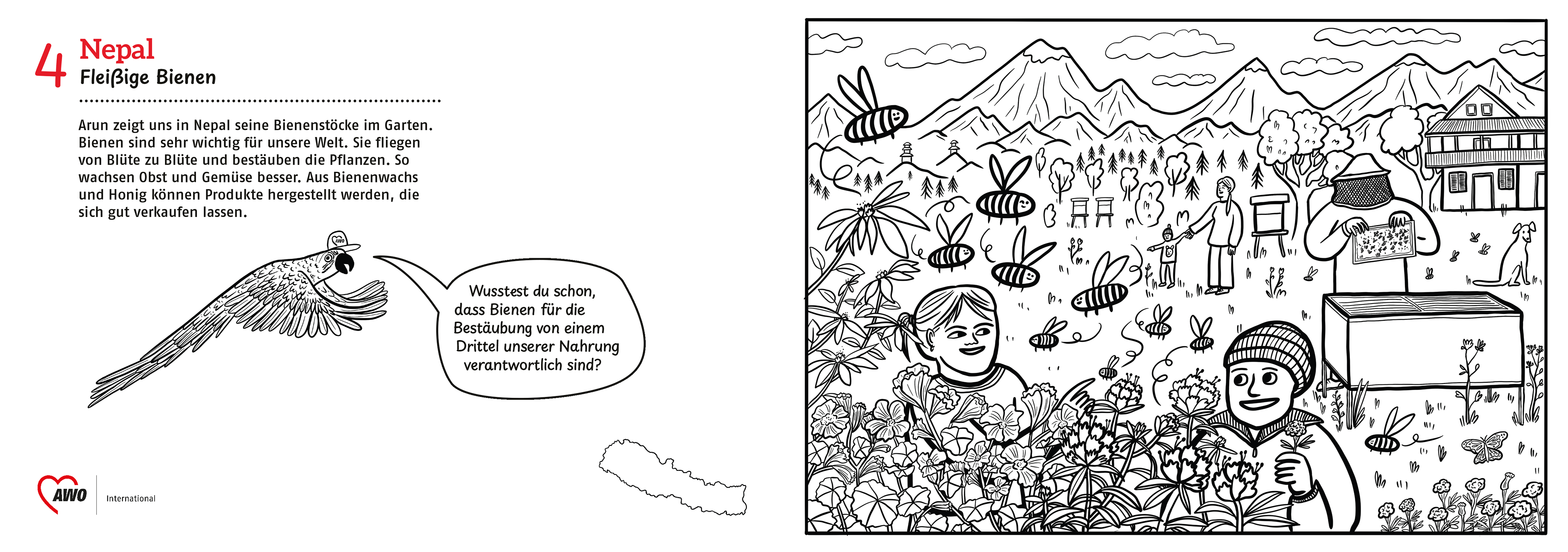 mit Illustrationen, die auf Projekte der AWO International e.V. basieren.